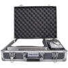 - Die cut foam insert provides places to store the weights and tripod legs.